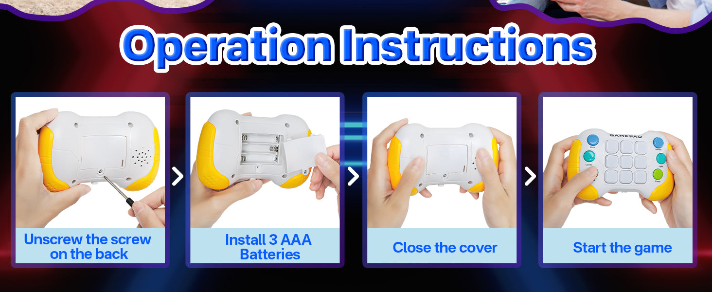 Défiez-vous ou défiez les autres ! Les lumières vous guident, l'adrénaline monte. Portable, léger et simple à maîtriser, c'est le partenaire idéal pour les voyages, les files d'attente, ou pour animer les soirées en famille. Créez des souvenirs, au lieu de se concentrer sur les écrans !